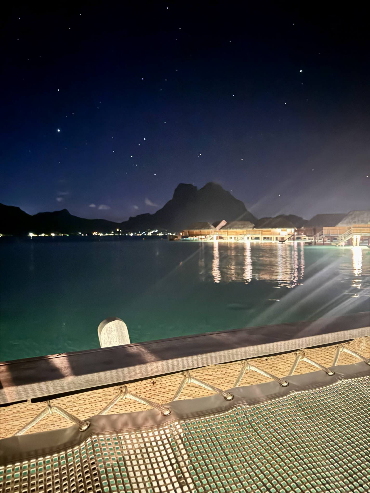 タヒチ島の水上バンガローからはモーレア島を望むことができるお部屋も。