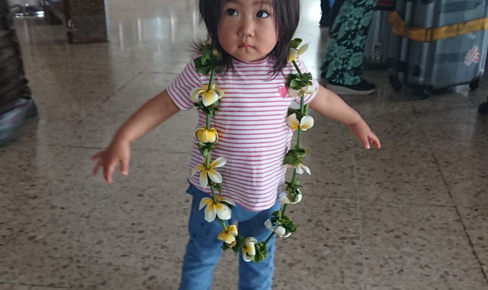 タヒチはハネムーンで行くところと思っている方が多いですが実は欧米からはファミリーのお客様も多く、日本でも最近はハネムーンでタヒチに行かれた方がお子様と一緒にタヒチを訪れるケースも増えています。今回、もうすぐ2歳のこどもと一緒に家族でボラボラ島に行ってきました。タヒチまでは成田から直行便で11時間。夕方に出発して、朝にはタヒチに到着というスケジュールで、子供は機内食を食べた後、すぐに寝てしまったので、タヒチ到着時から元気に走りまわっていました。